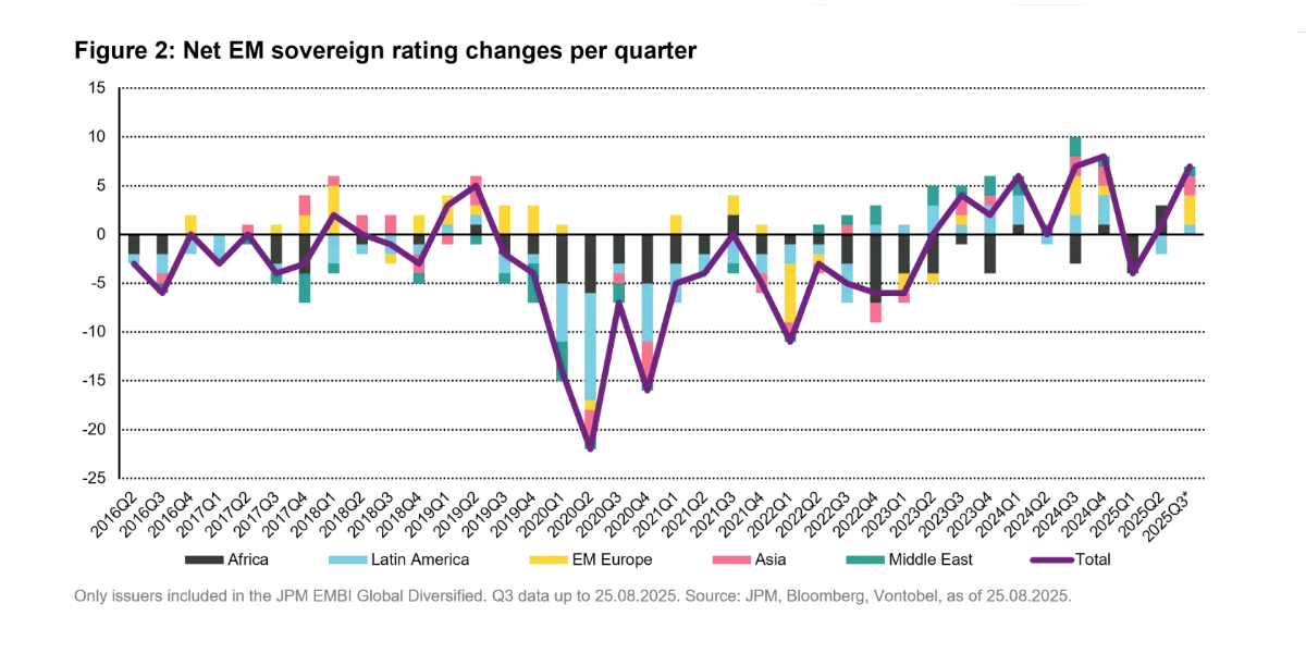 Vontobel, in a September paper, noted that in the prior three months, EM sovereigns had seen “11 upgrades and two downgrades, the highest net upgrades in more than a decade.”