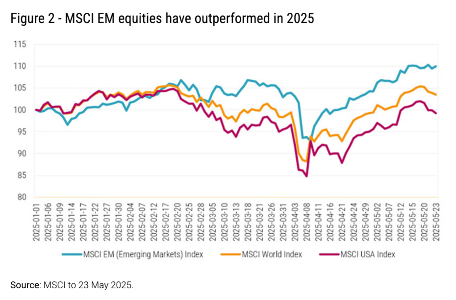 These countries, on the whole, have seen lower inflation, enjoyed appreciating currencies, and benefitted from both a weaker dollar and their domestic interest rate easing cycles, which began well more than a year before those in many developed markets.